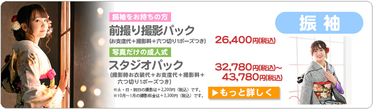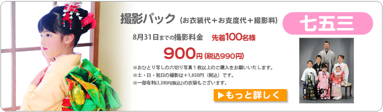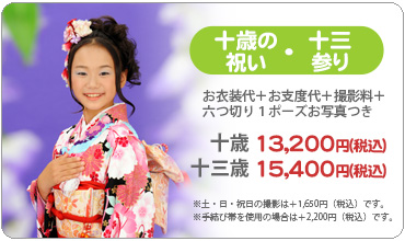 ※七五三、振袖などはお支度代・撮影料を含んだお得なパック料金をご用意しております。